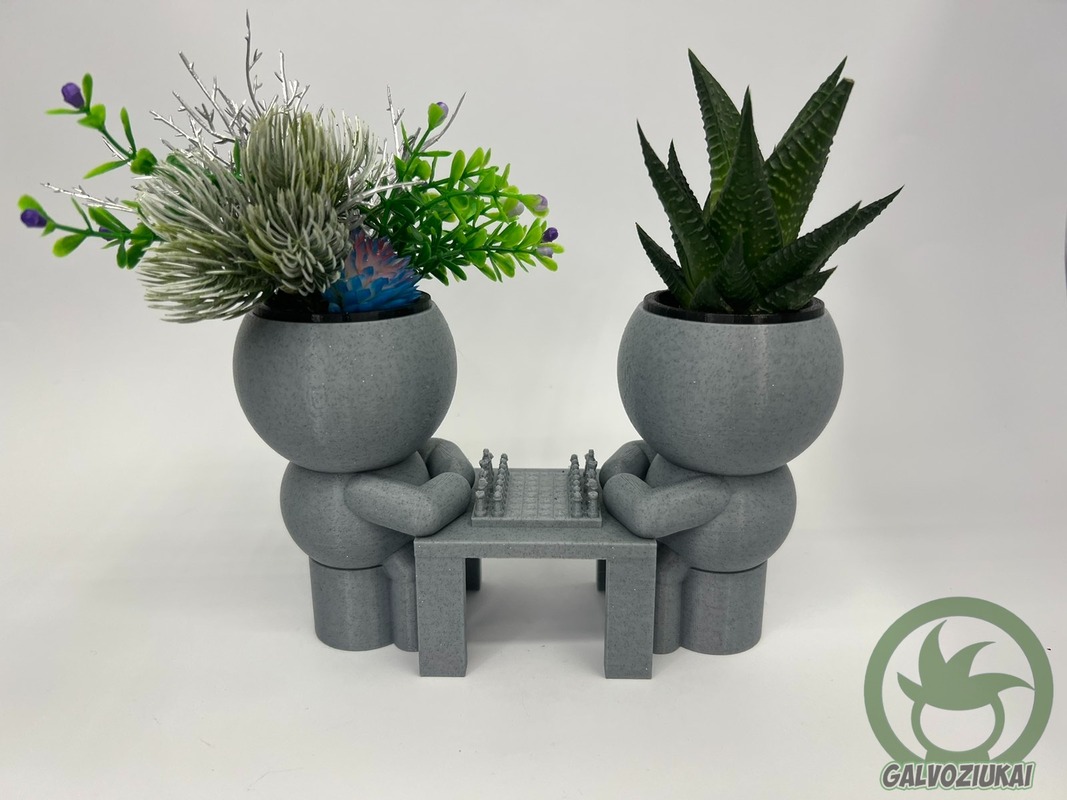 - KOMPLEKTE – žmogeliukas, ir prie jo galvytės pritaikytas specialus vazonėlis.